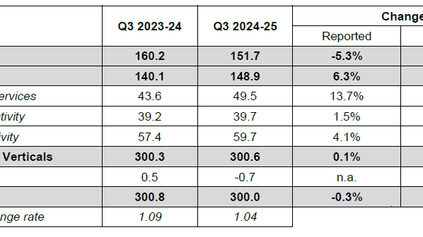 - Third Quarter Operating Verticals revenues of €300.6m, down 2.2%[1] year‑on-year